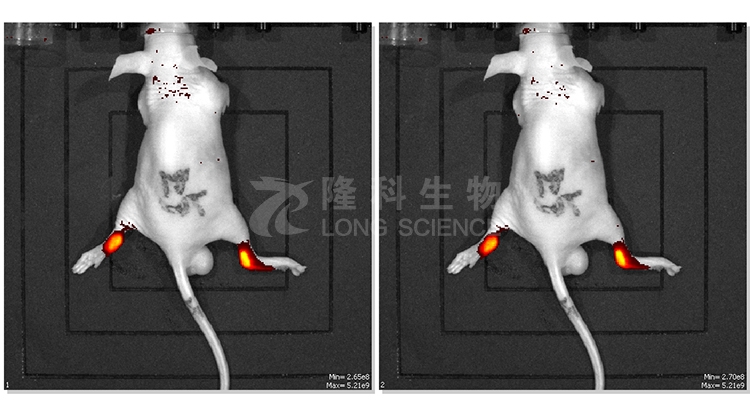 1.1生物发光设备:生物发光是用荧光素酶基因标记DNA,利用其产生的蛋白酶与相应底物发生生化反应产生生物体内的光信号。标记后的荧光素酶只有在活细胞内才会产生发光现象,并且发光强度与标记细胞的数目呈线性相关。