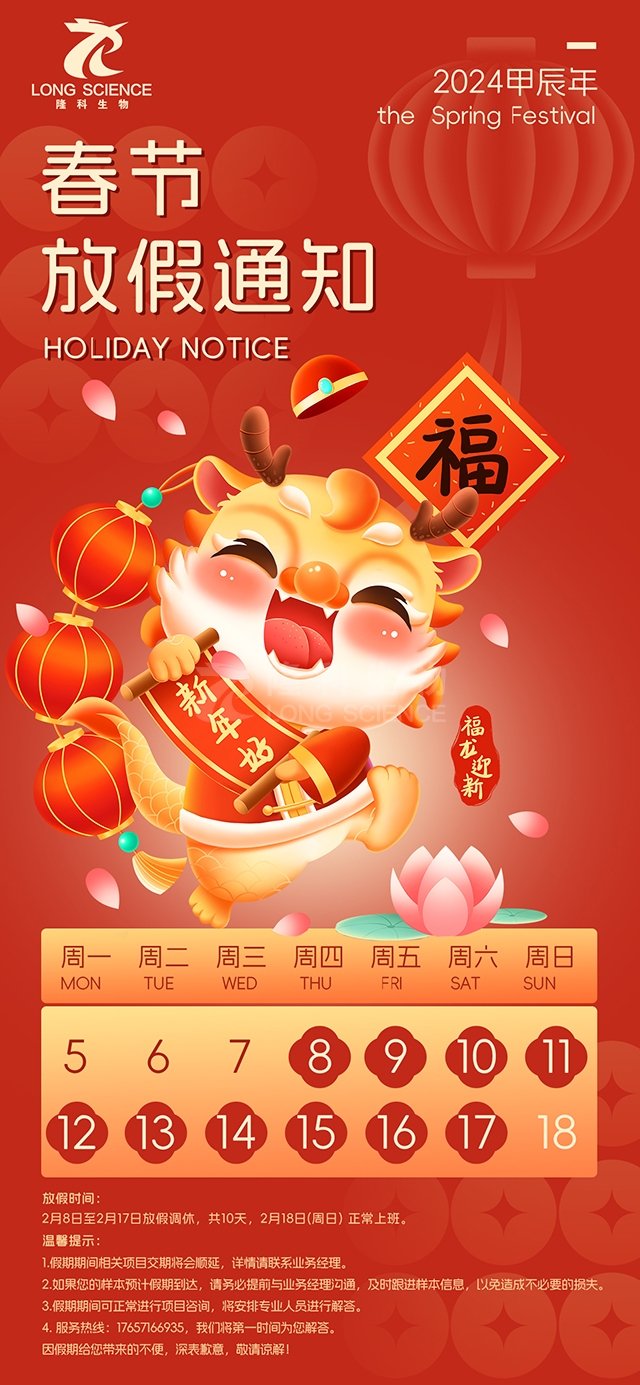 根据《国务院办公厅关于2024年部分节假日安排的通知》精神,并结合我公司具体情况,现将通宝TB222生物2024年春节放假安排通知如下: